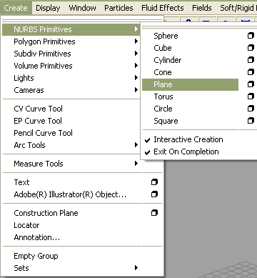 2- حالا به مایا می ریم و از منوی create / nurbs / plane یک پلان بسازید