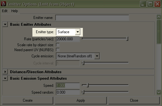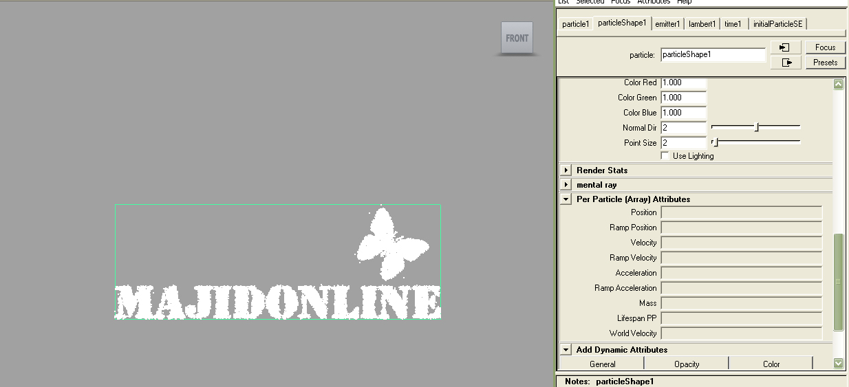 3- حالا از منوی پارتیکا ل مربع جلوی emit from object رو بزنید ودر ادامه از منوی فایل file دکمه reset رو بزنید ،نوع emitter رو هم surface ودر جلوی rate عدد 20000 رو وارد کنید .